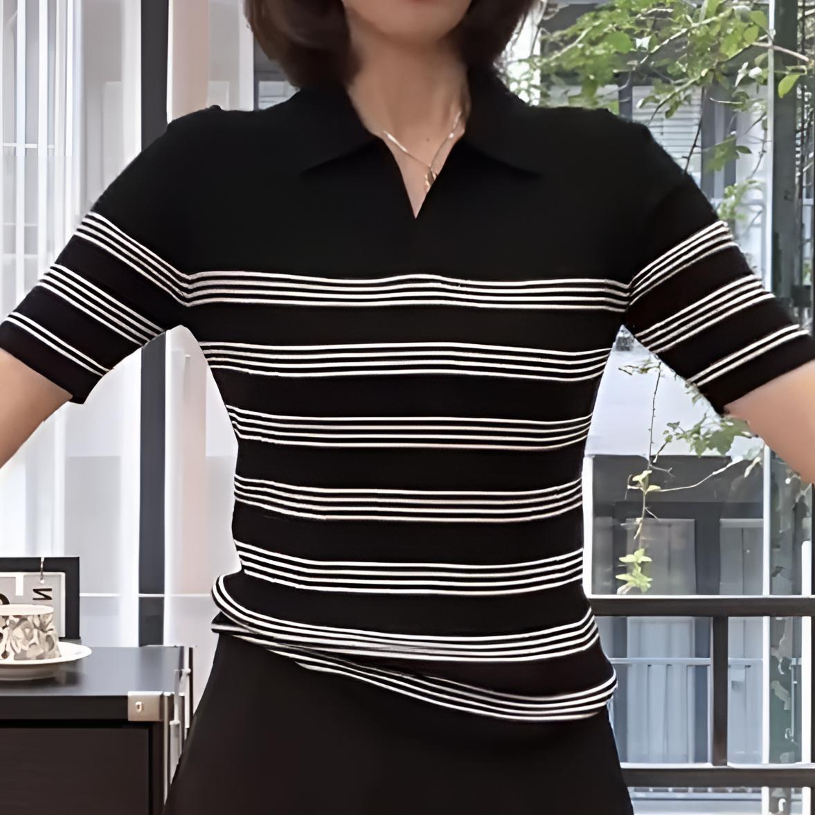 [100 Lyocell Tencel] New Striped Short-sleeved Women's Summer Slim-fit Slimming Age-reducing POIO Collar Fashion Knitted