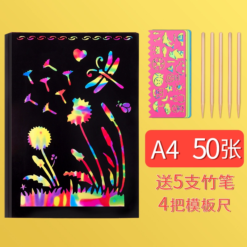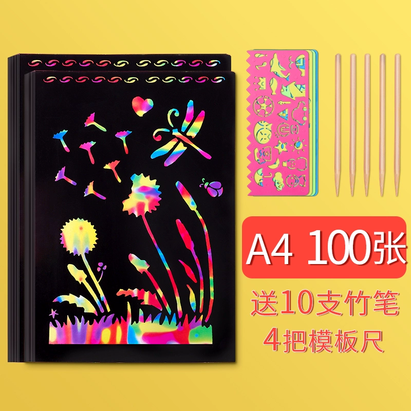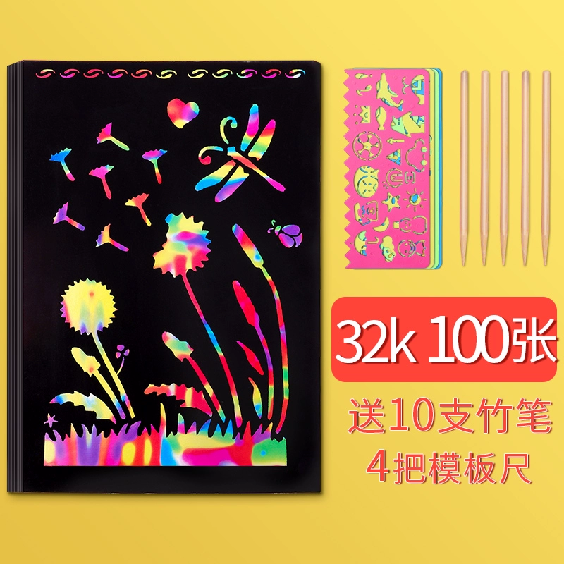 | nameOriginal | 100 pieces of scratch-off paper for children, free shipping, graffiti a4 scratch-off paper, handmade DIY production of creative colorful sand paintings |