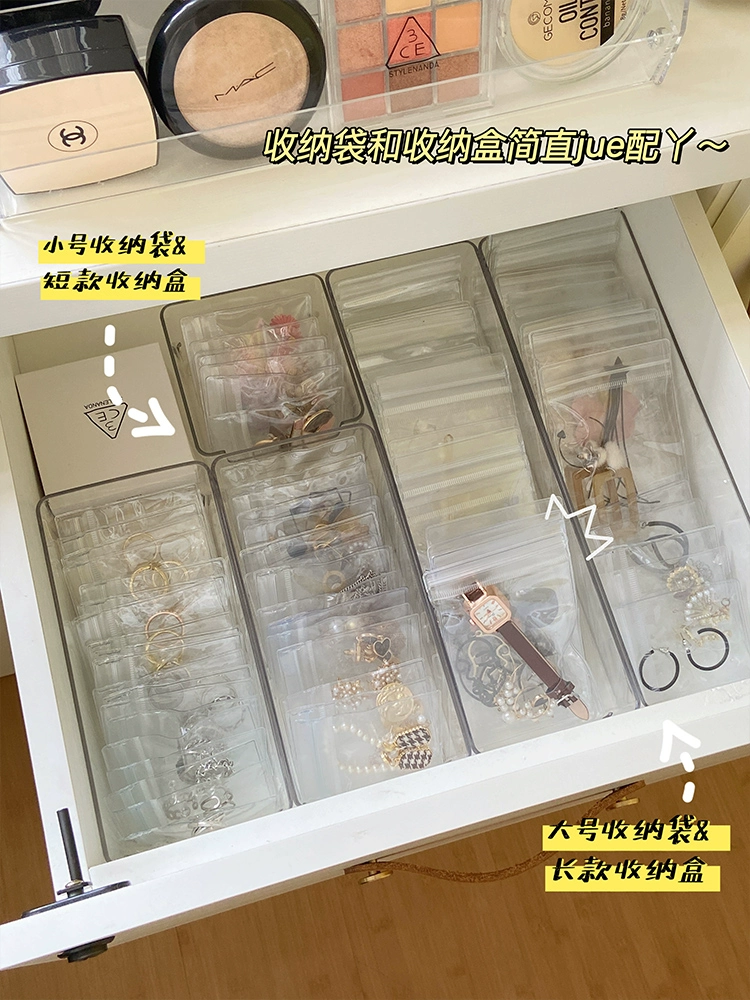 100 portable PVC transparent dust bag earring jewelry box anti-oxidation sealed bag necklace jewelry storage box