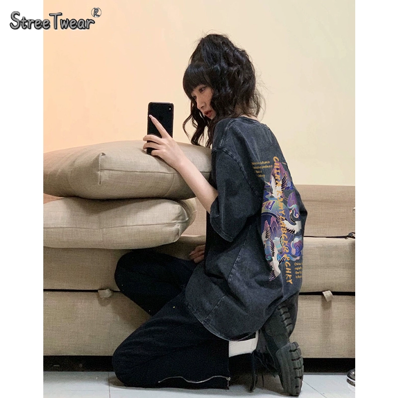 | nameOriginal | 100% pure cotton Chinese style distressed washed black short-sleeved T-shirt 2024 Year of the Dragon animal year printed ins trend versatile top |