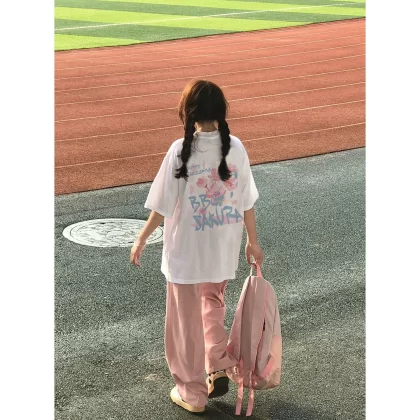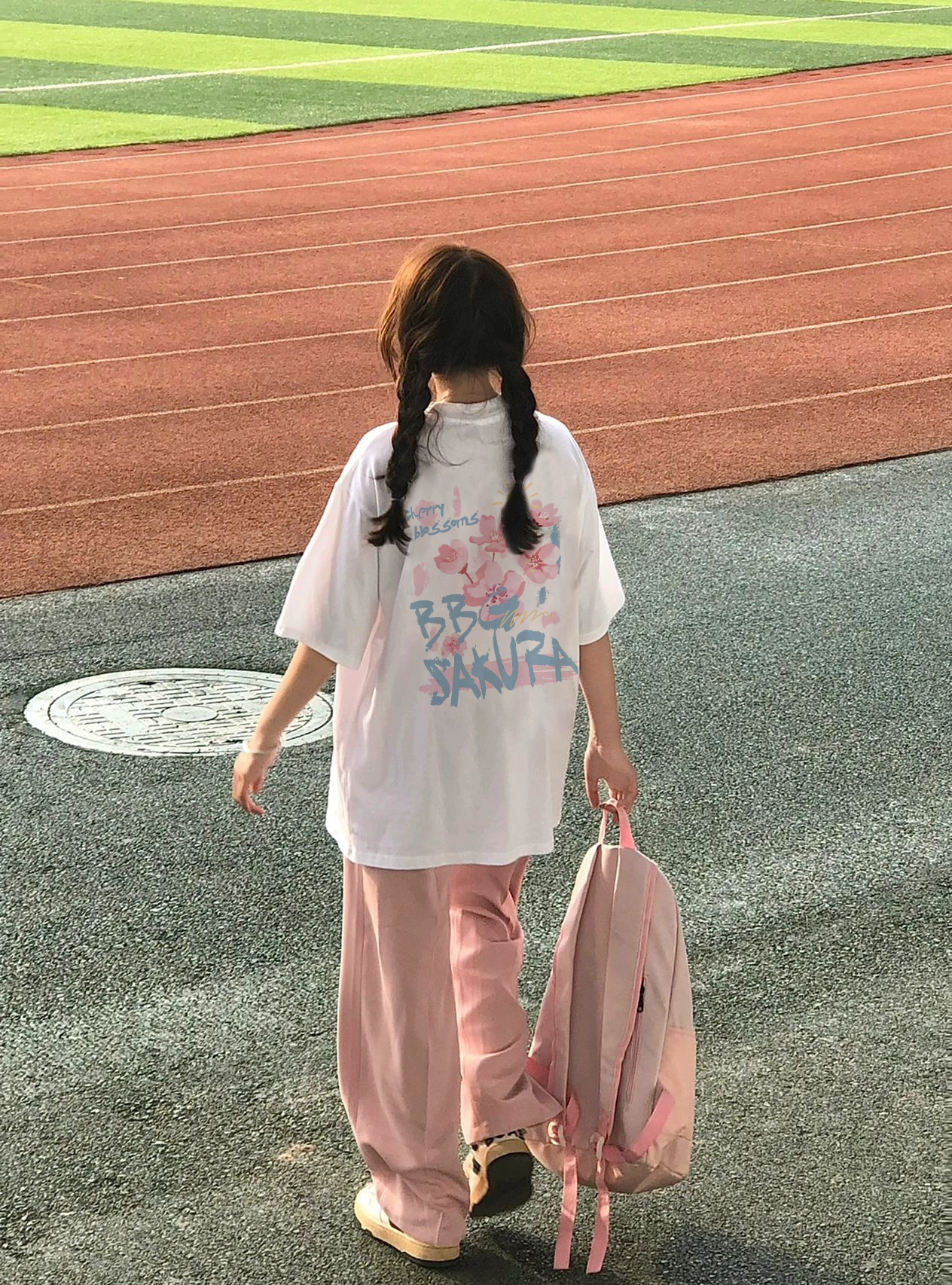 100%cotton niche niche in summer new short -sleeved T -shirt female student ins design sense versatile casual top tide
