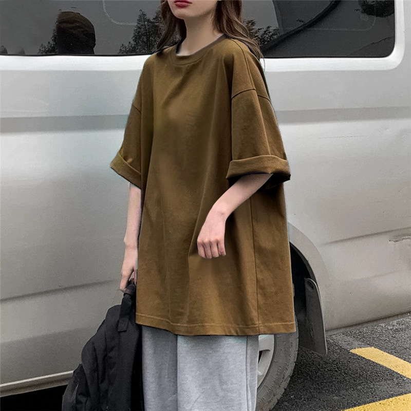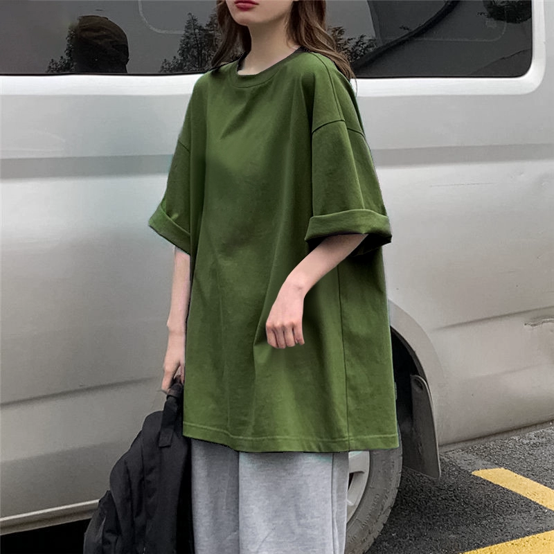 | nameOriginal | 100% pure cotton summer new dark green short-sleeved T-shirt female students ins trendy brand inner layering shirt solid color top |