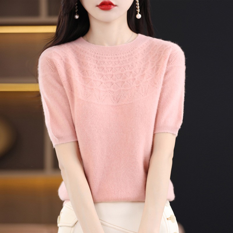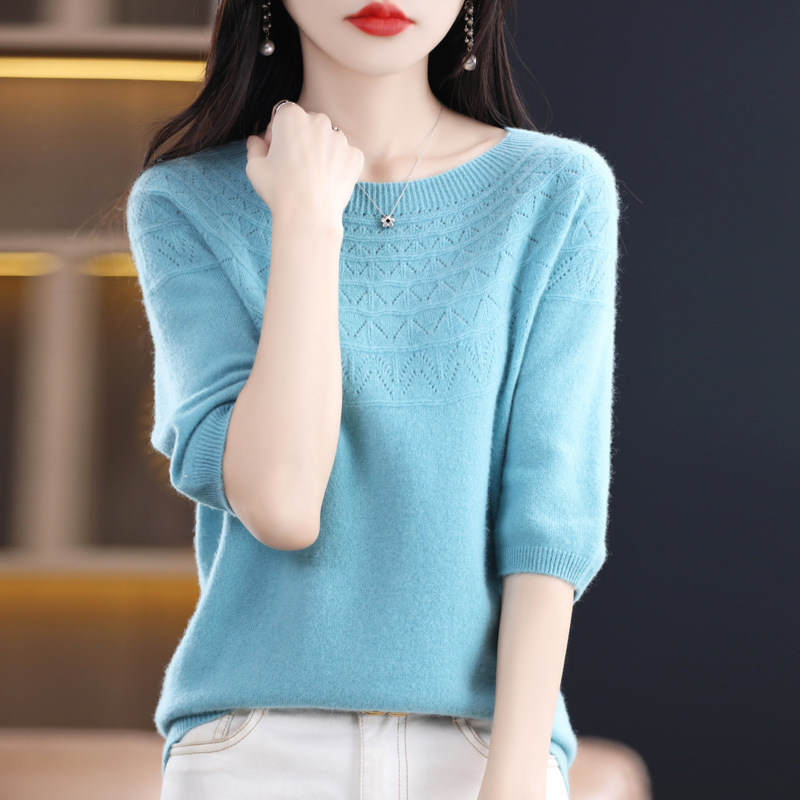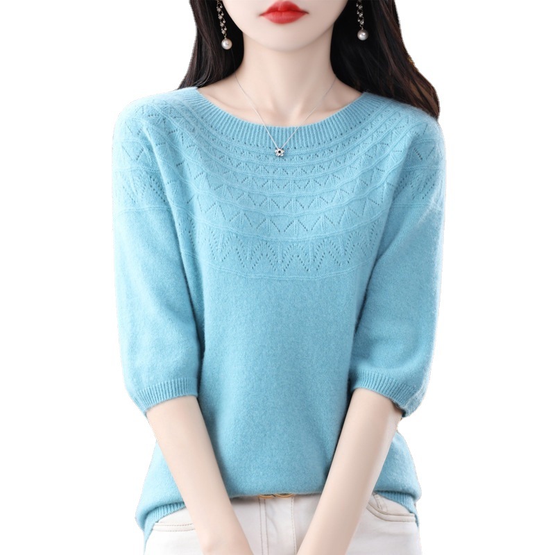 | nameOriginal | 100 pure woolen sweater hollow-out thin knitted top women's half sleeve fashionable knitted bottoming half sleeve cashmere sweater |