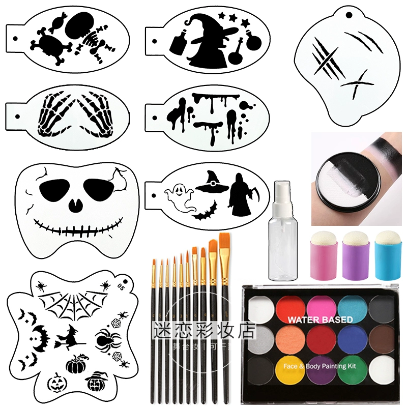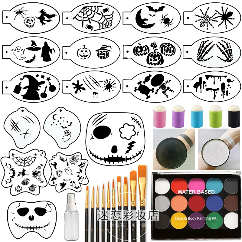 10,000 Christmas children's face painting template party dance horror skull spider hollow painting version tattoo stickers
