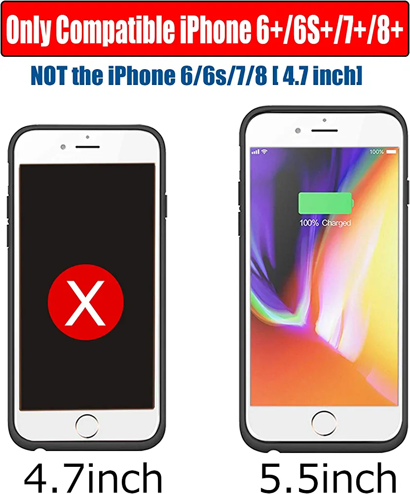 Please note that this battery case is specifically designed for the iPhone 6 Plus/6s Plus (5.5 inch) and is not compatible with other models such as the iPhone 6/6s (4.7 inch).