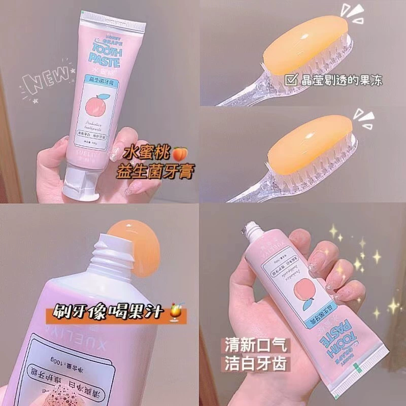 100g/probiotic toothpaste grape peach flavor children bright white remove yellow remove bad breath fresh breath fruit flavor