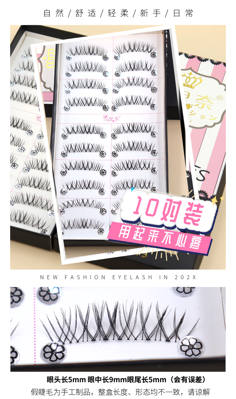 107 Shirina false eyelashes for women, natural simulation, 10 pairs, transparent stems, makeup artists love to use thick stage makeup