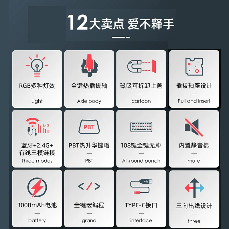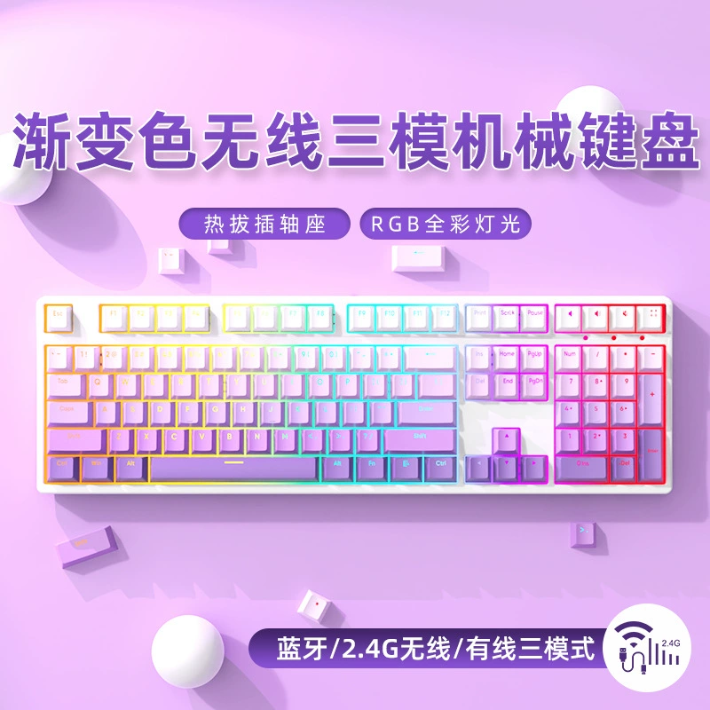 | nameOriginal | 108-key wireless bluetooth three-mode mechanical keyboard gradient color game e-sports office customized RGB hot-swappable axis |