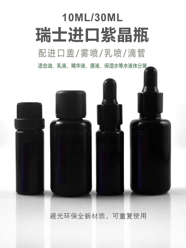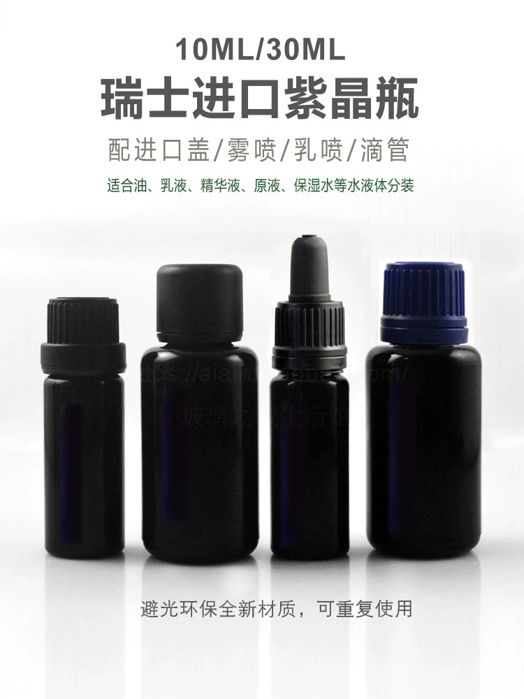 | nameOriginal | 10ml30ml50ml100ml imported amethyst bottle mist spray milk spray pump dropper large head cap drop stopper glass bottle |