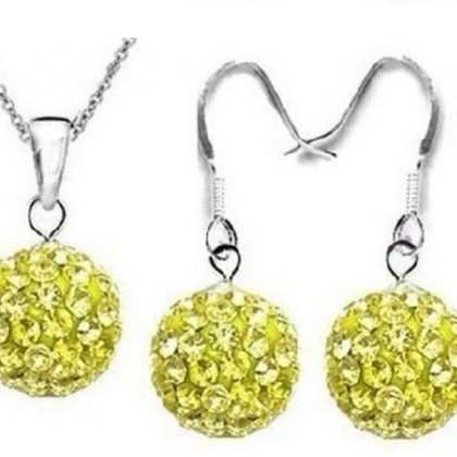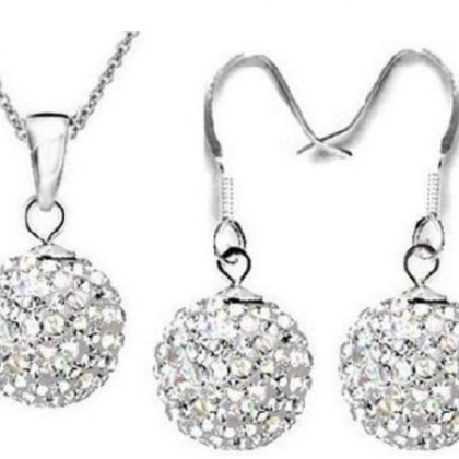 10mm AB Mud Full Diamond Ball O-Chain Crystal Shambhala Bracelet Set Ear Hook Necklace