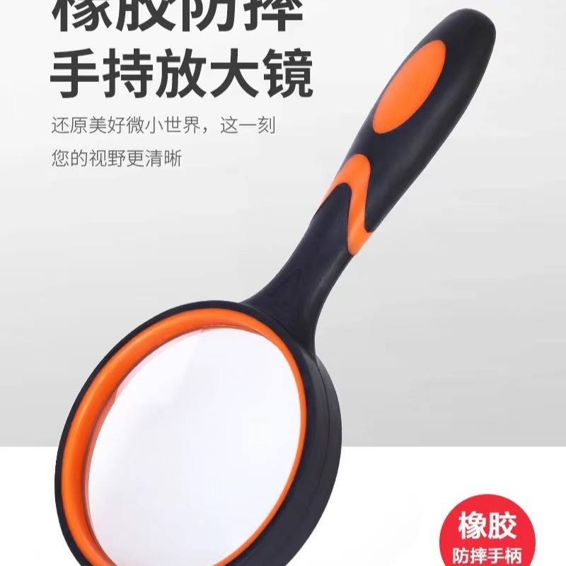 10x HD Optical Lens Rubber Drop-resistant Plastic Handle for Elderly Reading Handheld Glass Orange Magnifier