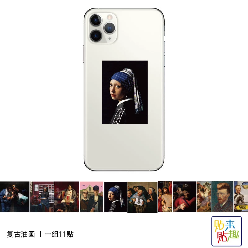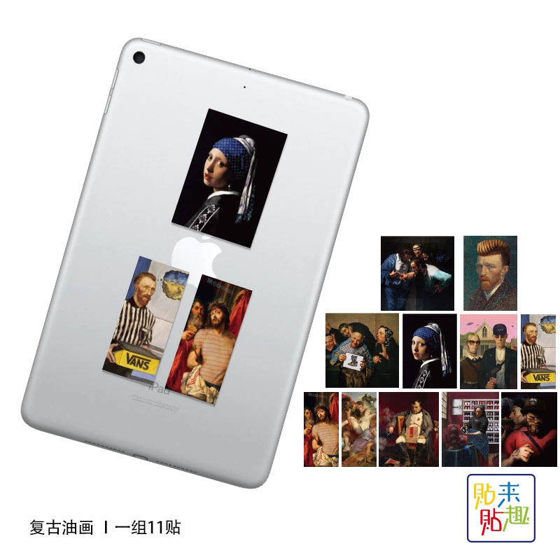 11 pieces of European and American retro oil painting small stickers mobile phone case power bank computer water cup helmet motorcycle sticker waterproof