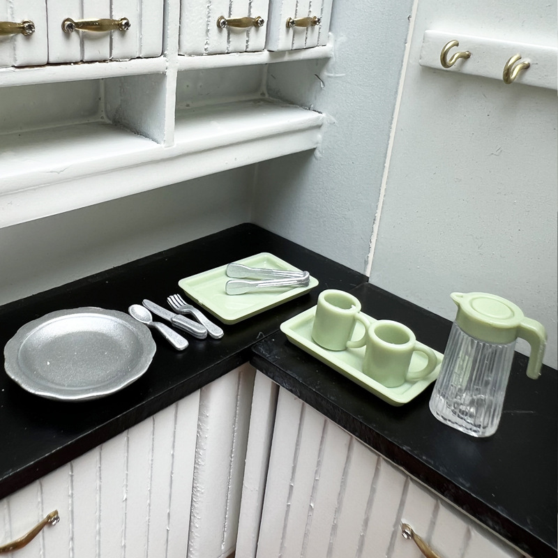 1:12 doll house dollhouse mini simulation DIY miniature model scene plate knife and fork kettle suit