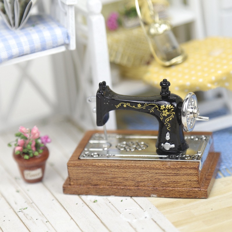 | nameOriginal | 1:12 miniature doll house accessories simulation mini retro open box sewing machine model play house toy ornaments |