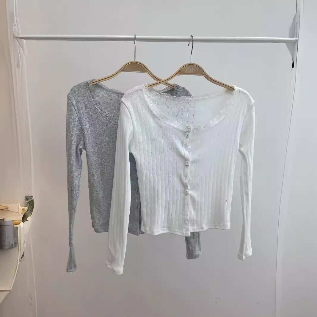 | nameOriginal | 1166# two-color lace collar button pit cardigan |