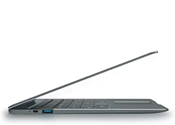 The metallic body and slim design give the laptop a premium look and feel, making it a stylish accessory to carry around. The grey color adds to the overall aesthetic appeal of the device.