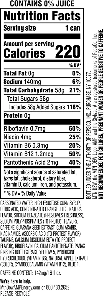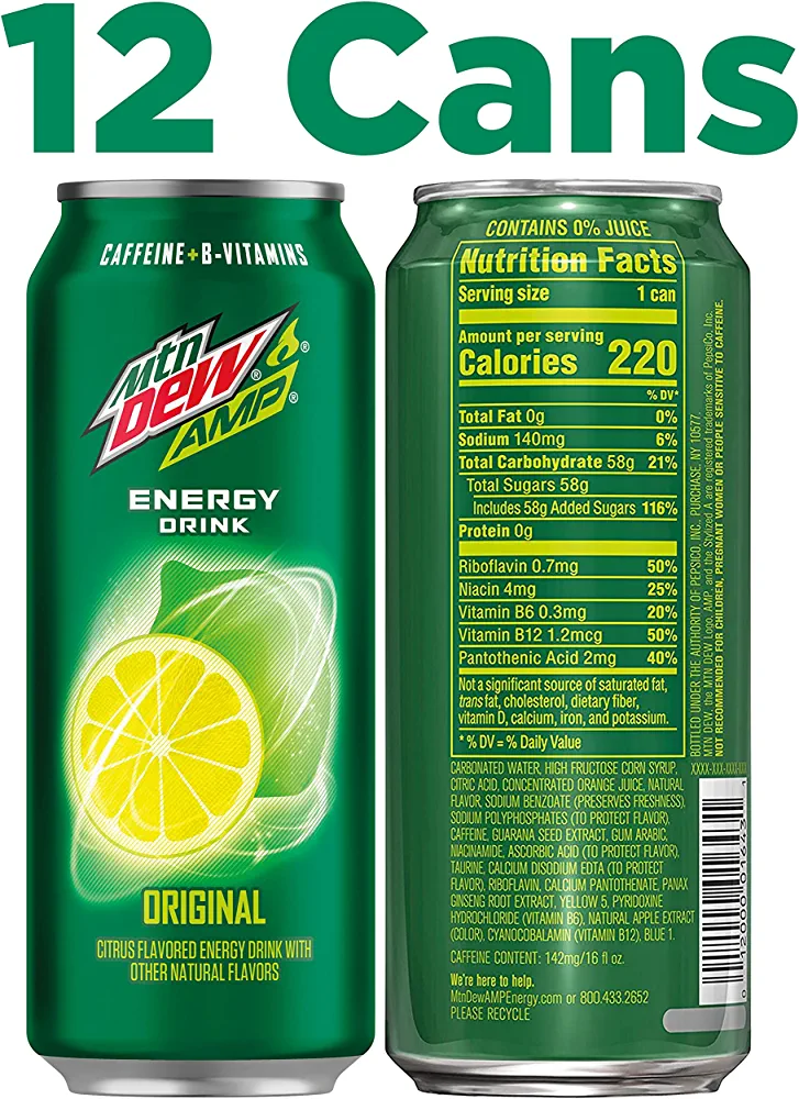 | nameOriginal | Amp Energy, Original, Caffeine, B Vitamins, 16 Fl Oz. Cans (12 Pack) |