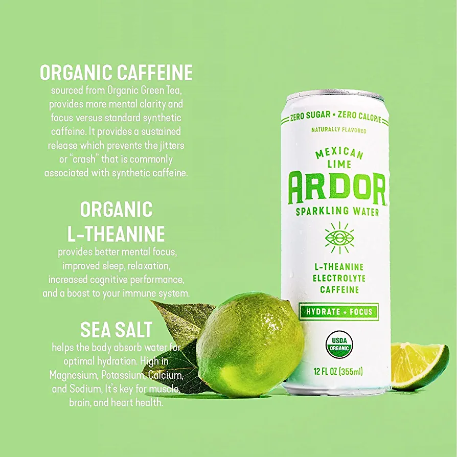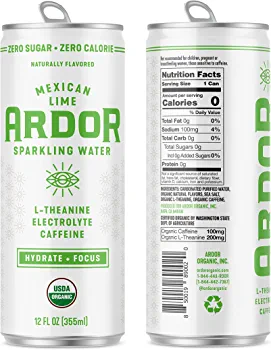 Introducing Ardor Energy Sparkling Water – a certified organic, flavored seltzer water that’s perfect for those looking for a refreshing and energizing drink. This sparkling water is infused with premium active ingredients such as organic caffeine and organic L-theanine, which provide energy, focus, and hydration.