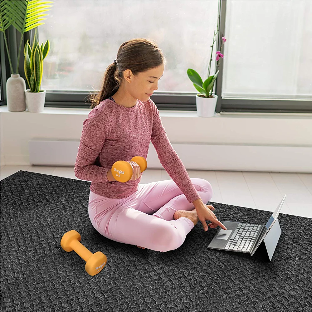 Yes4All Interlocking Exercise mat is made of high density EVA foam which provides a soft, durable, and shock-absorbing surface for your experience when exercising or playing with your children. Plus, the EVA foam mat is grippy enough to ensure a non-slip workout surface.
