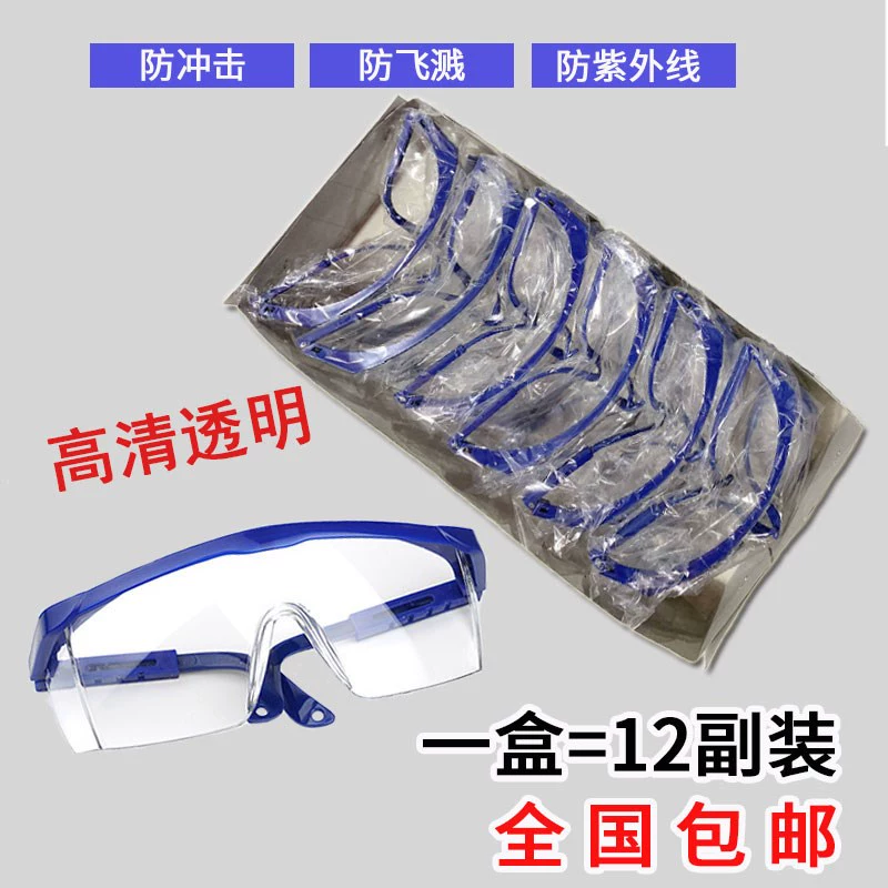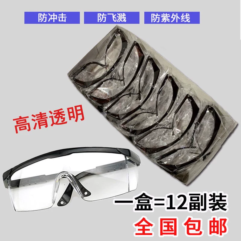 12 pairs of protective goggles, labor protection, anti-splash, industrial men and women, dustproof, windproof, sandproof, cycling, welding, transparent protective glasses