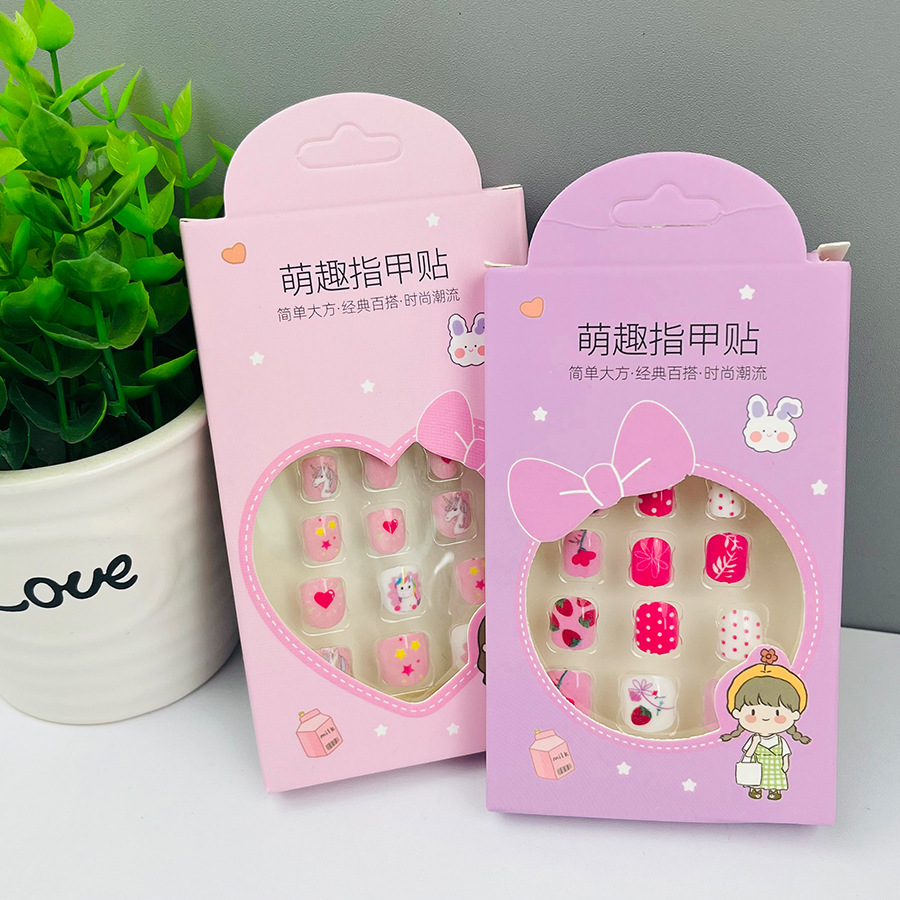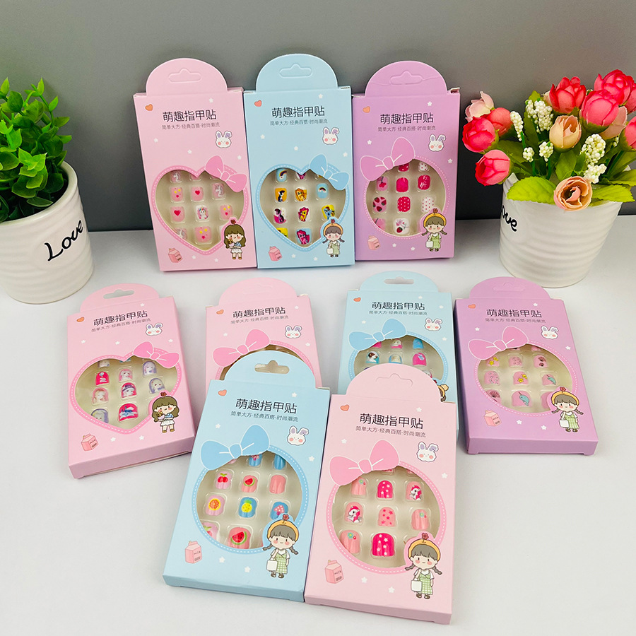 12 pieces children's nail patch cartoon safe waterproof non-toxic nail sticker little girl wearable removable manicure