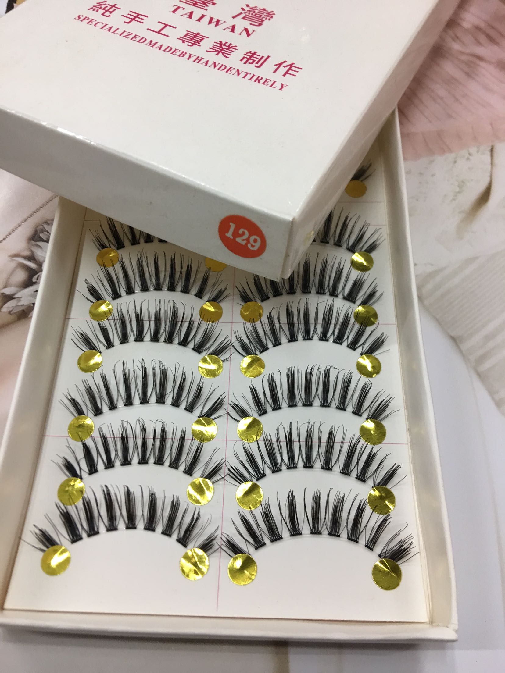 129 Taiwan pure handmade false eyelashes natural nude makeup short thick cross style transparent stem eyelashes free shipping