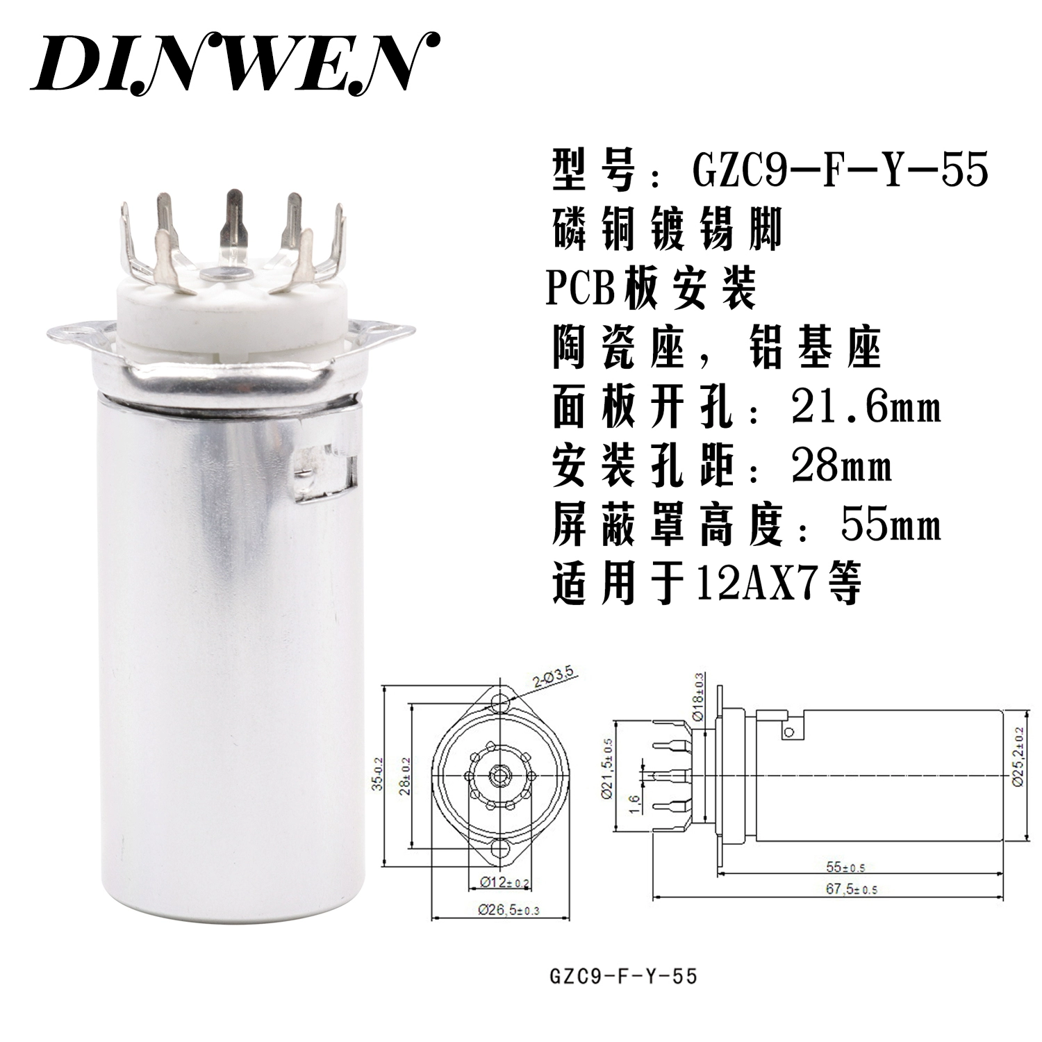 | nameOriginal | 12AX7 small 9-pin electronic tube holder with shield tube cover tube amplifier guitar GZC9-F-B-55 for scaffolding PCB |