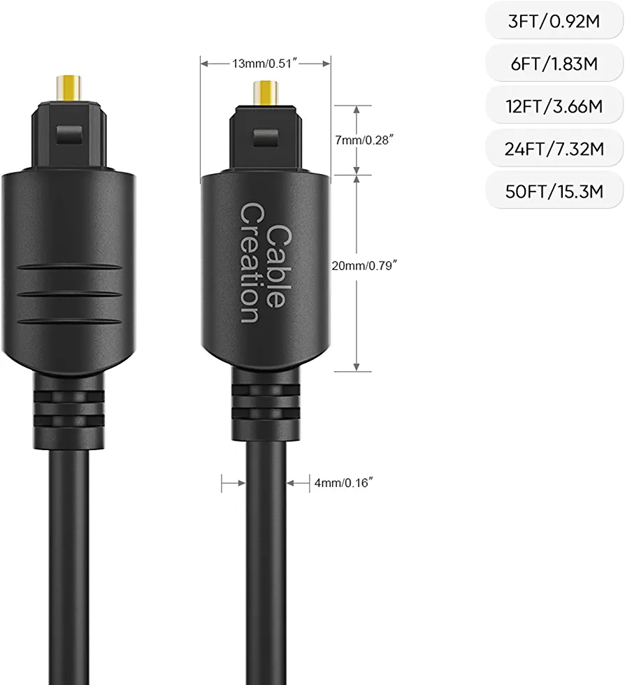 Enhance your gaming experience and create the perfect home theater with our highly polished convex lens of fiber optics heads. Our Toslink optical digital audio cable features 24K gold-plated connectors that resist corrosion and ensure a tight connection, providing a clear, smooth-flowing optimal signal.