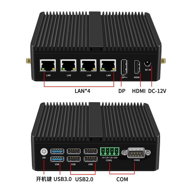 12th generation N100 mini industrial control machine 2.5G FOUR-network port aikuai soft route J6426 fanless industrial host