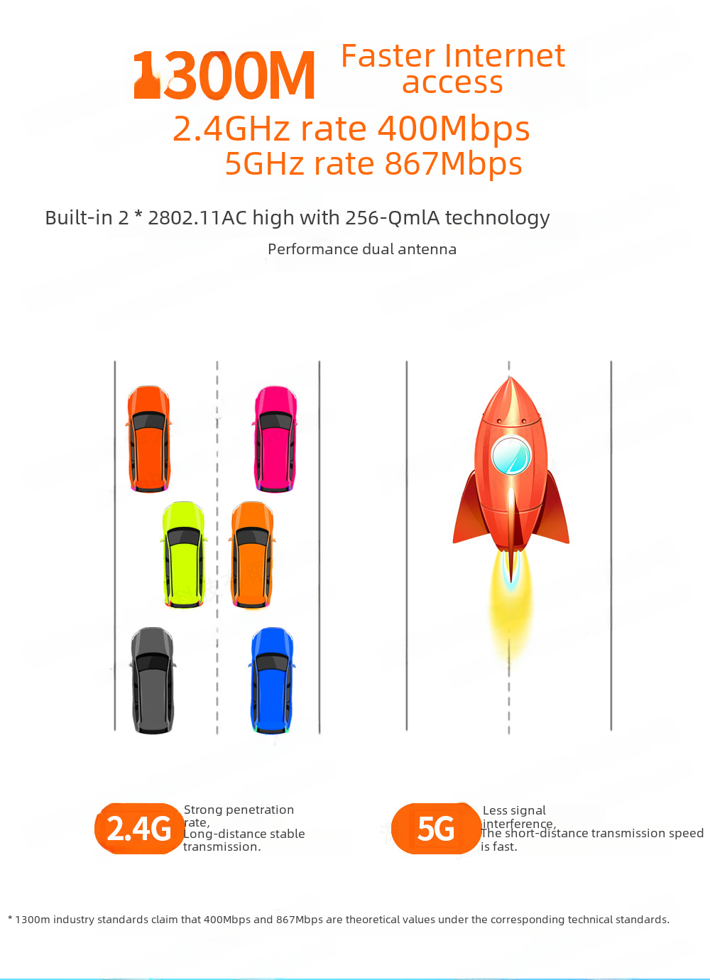| nameOriginal | 1300m dual-frequency USB wireless network card Bluetooth WIFI 2-in -1 computer 2.4G/5G wireless network card drive-free |