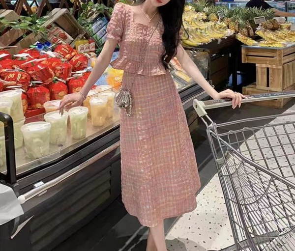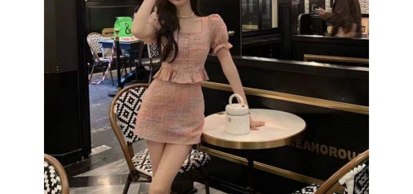 | nameOriginal | [13034] Fashion Bubble Sleeve Short Top Women's Summer High Waist Hip Skirt Two-Piece Chenille |