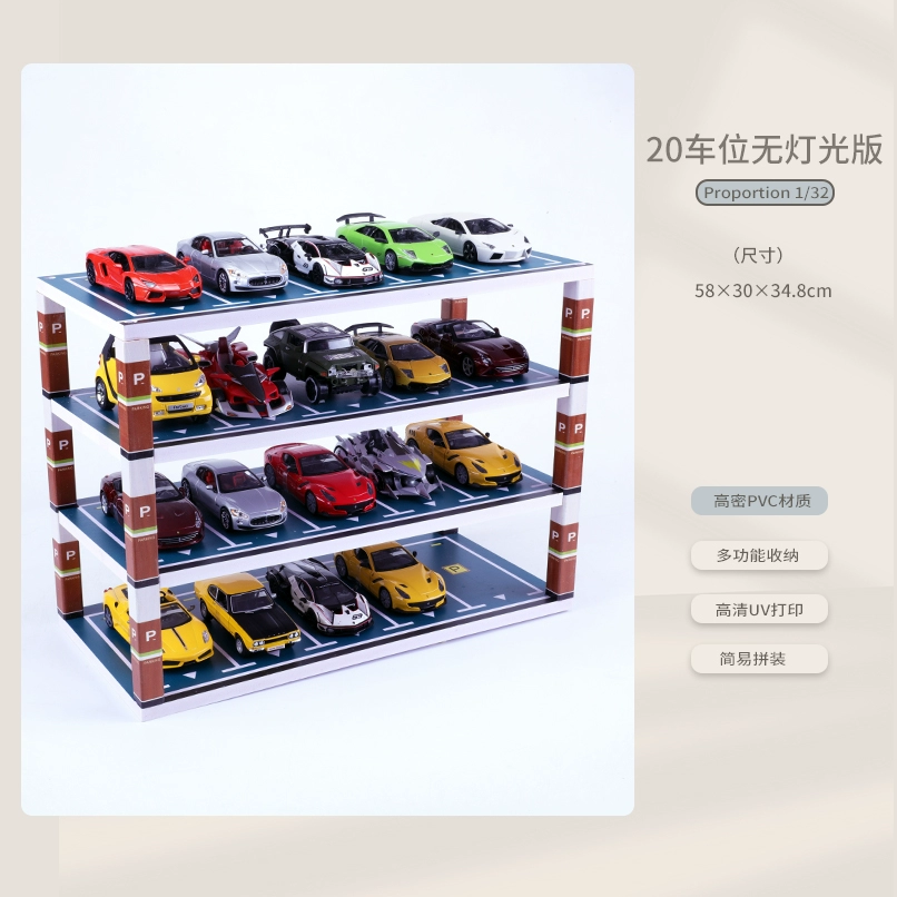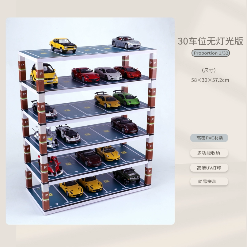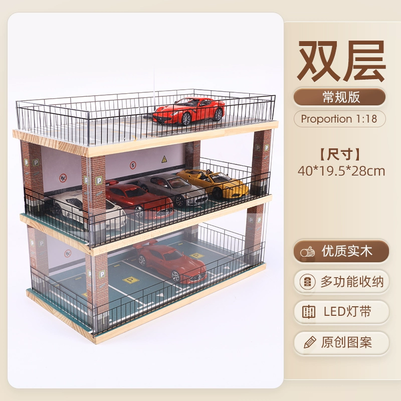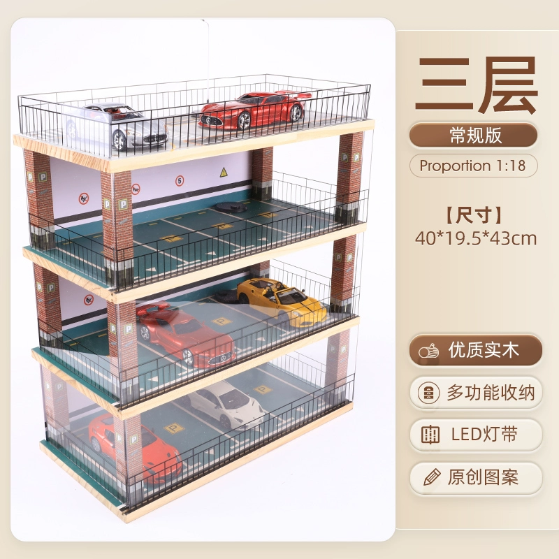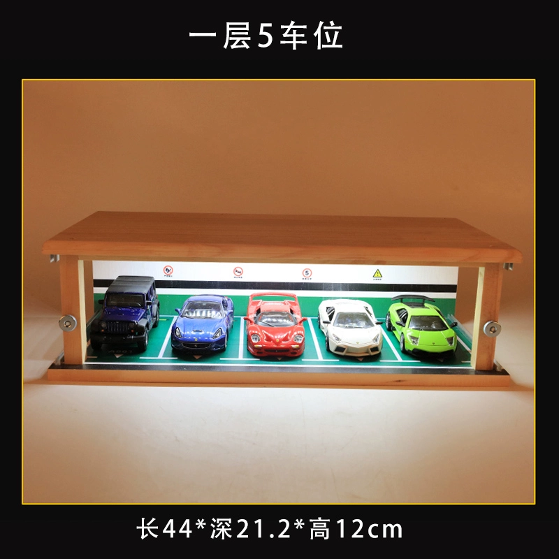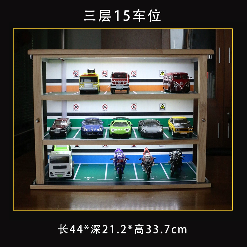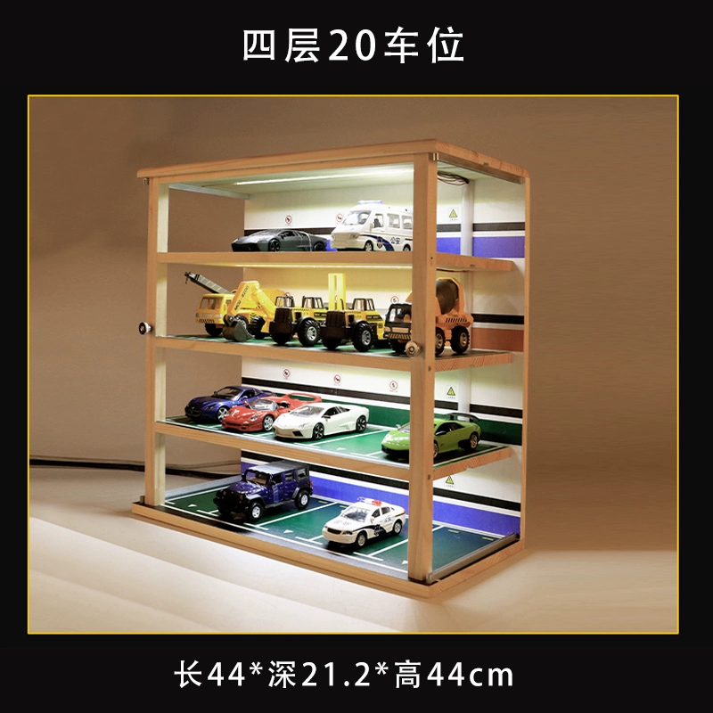 1:32 car model storage display cabinet solid wood parking lot model model storage dust box with light