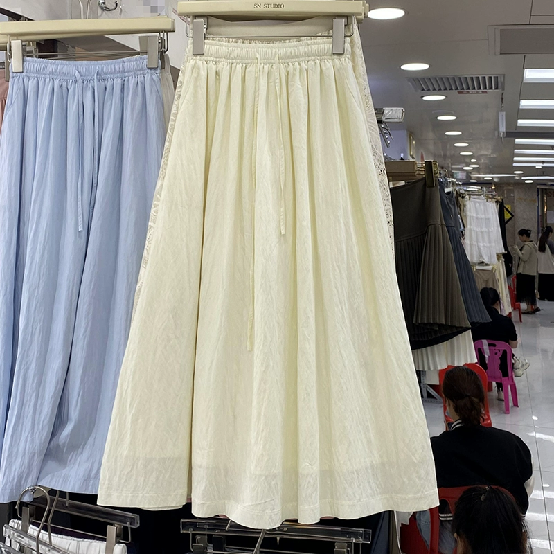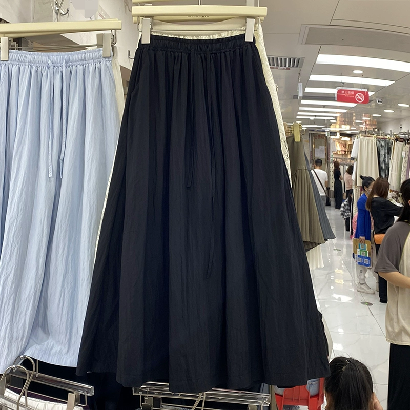 | nameOriginal | 13W preppy summer mid-length a-line skirt with drawstring |