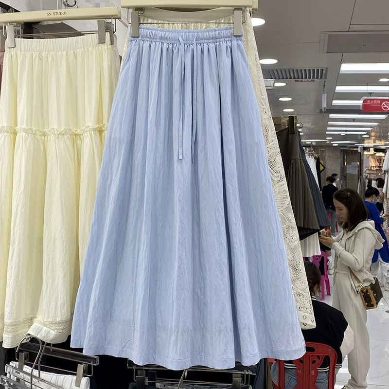 | nameOriginal | 13W preppy summer mid-length a-line skirt with drawstring |