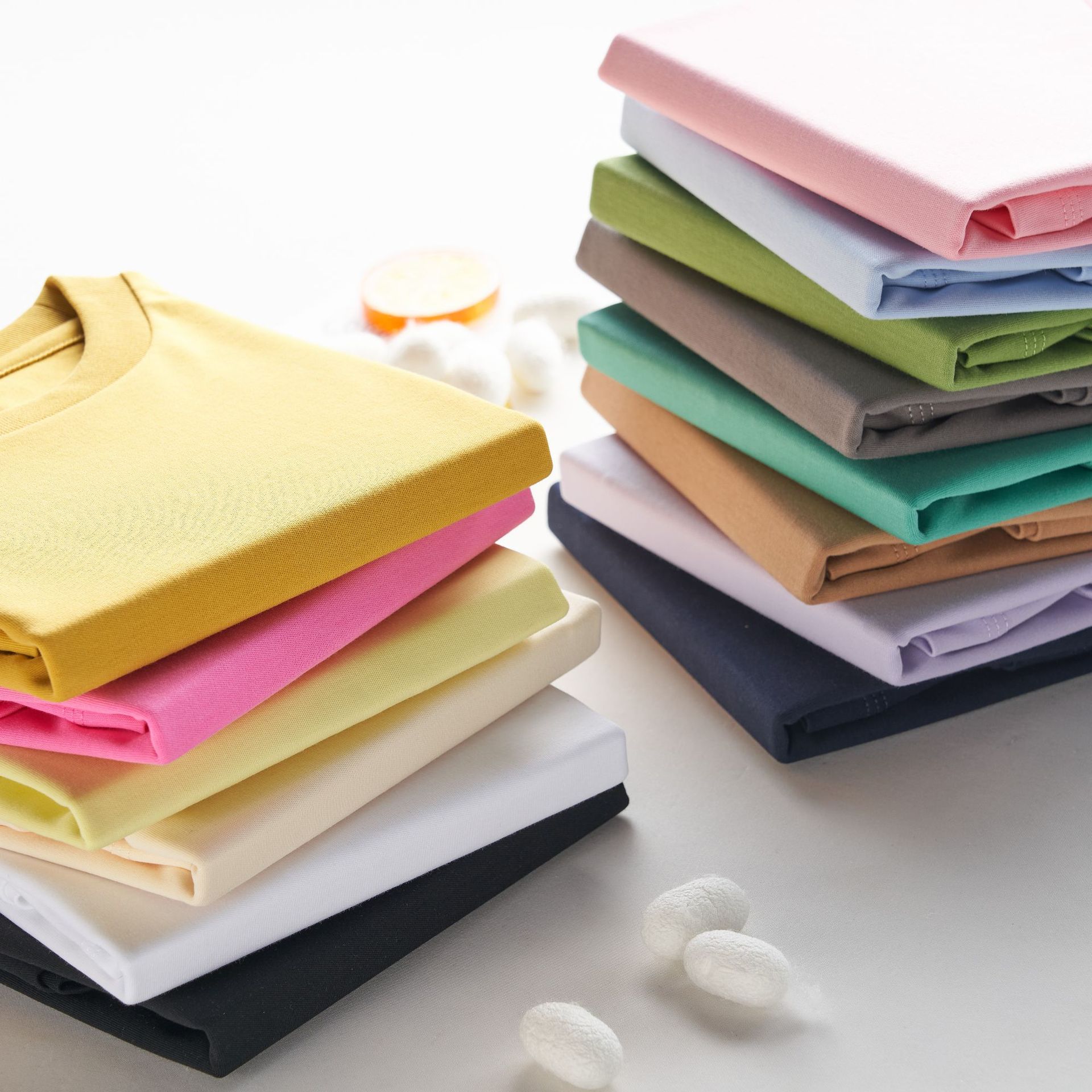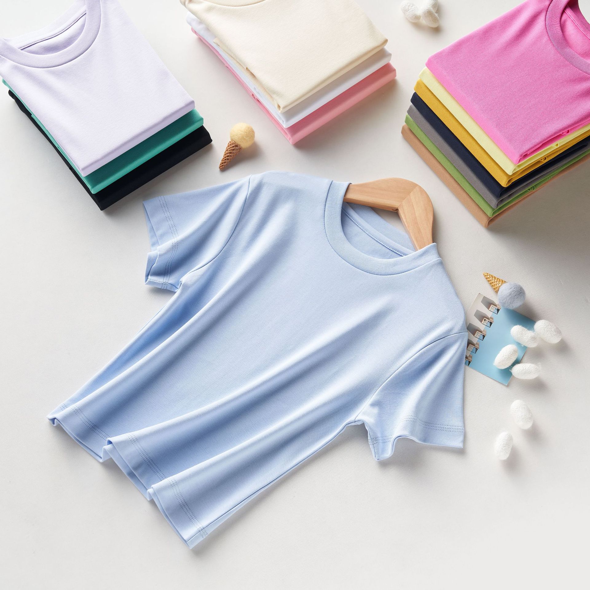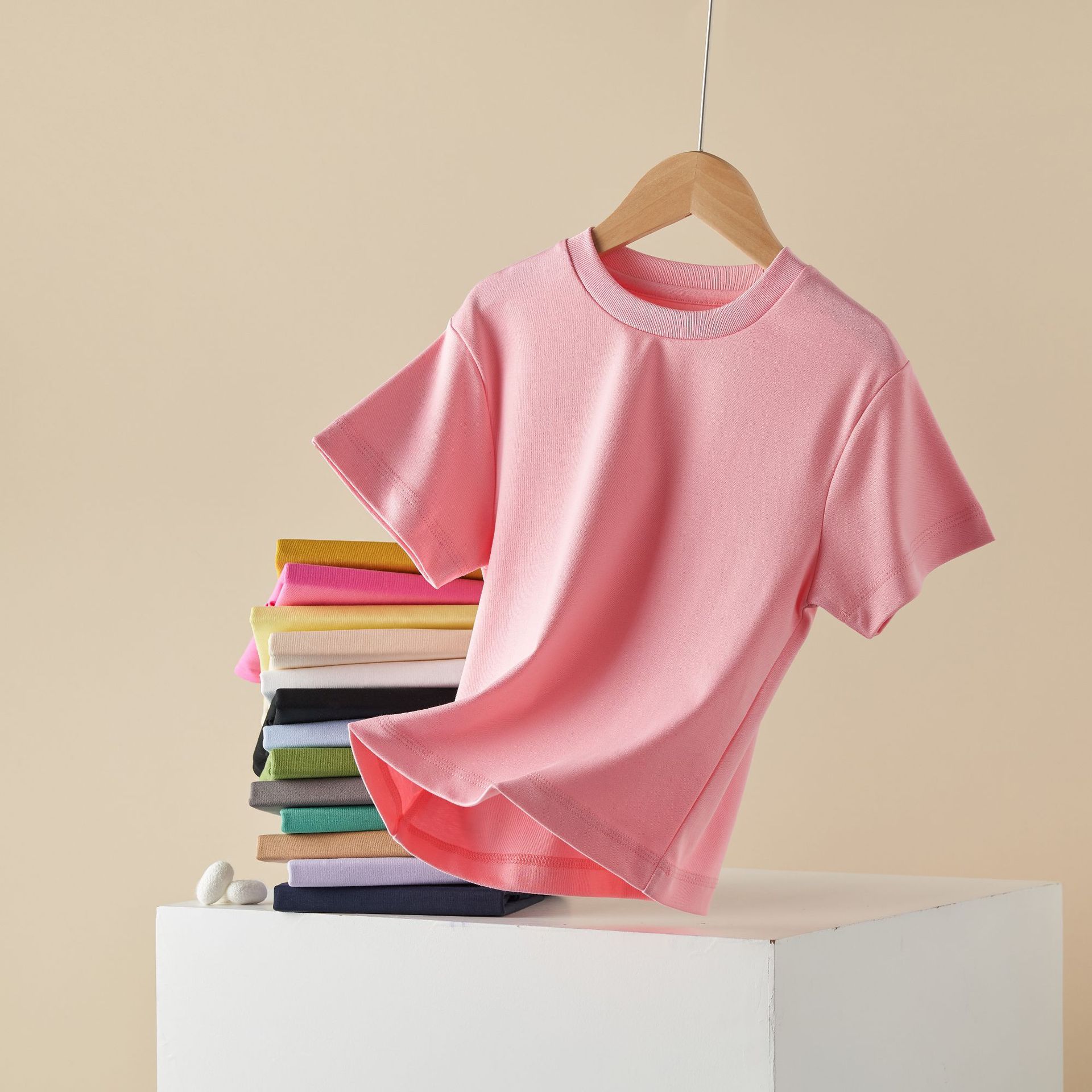 14 Color Silk Soft Light Cotton Solid Color Children’s Wear T-shirt for parents and children bottoming summer loose version mid-length sweethearts outfit