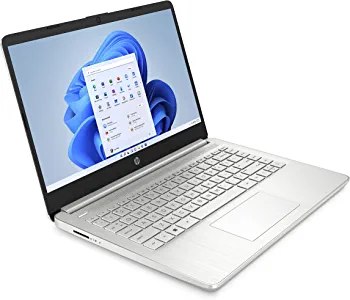 14-inch HP Laptop with 12th Gen Intel Core i5 processor, 8GB RAM, 512GB SSD, Intel Iris Xe Graphics, and Windows 11 in Natural Silver.