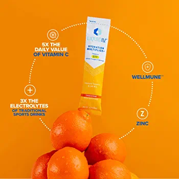 This product is designed to support and strengthen the immune system with a blend of Vitamin C, Zinc, and Wellmune. Each packet contains 5 times the daily value of Vitamin C. The Cellular Transport Technology (CTT) used in all Liquid I.V. products ensures rapid absorption of water and other key ingredients into the bloodstream. This Hydration Multiplier+ Immune Support Powder Drink Mix is made with premium ingredients, is non-GMO, gluten-free, soy-free, and dairy-free. It comes in single-serving, travel-friendly packets that are easy to use on the go. Simply pour one packet into 16 oz of water, mix or shake, and hydrate. With every purchase, Liquid I.V. donates a serving to someone in need around the world, providing much-needed hydration in disaster zones, hospitals, impoverished communities, and emergency living quarters. Since 2015, they have donated over 19 million servings.