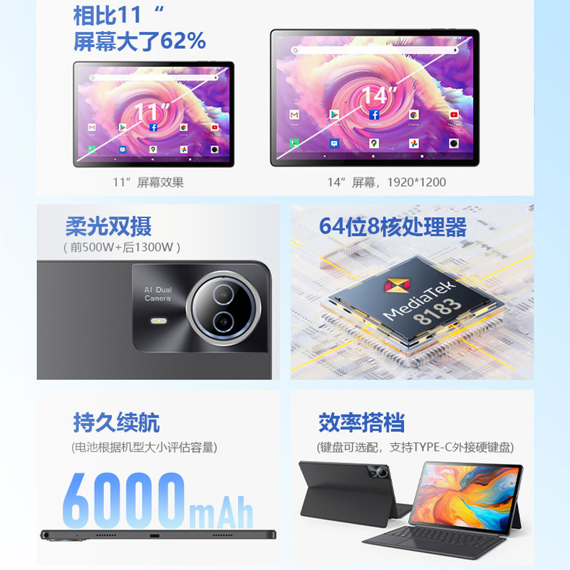| nameOriginal | 14 "Tablet PC Super Large Screen 4K HD Screen eight nuclear 5G Dual Frequency WIFI Office Game Tablet Wholesale |