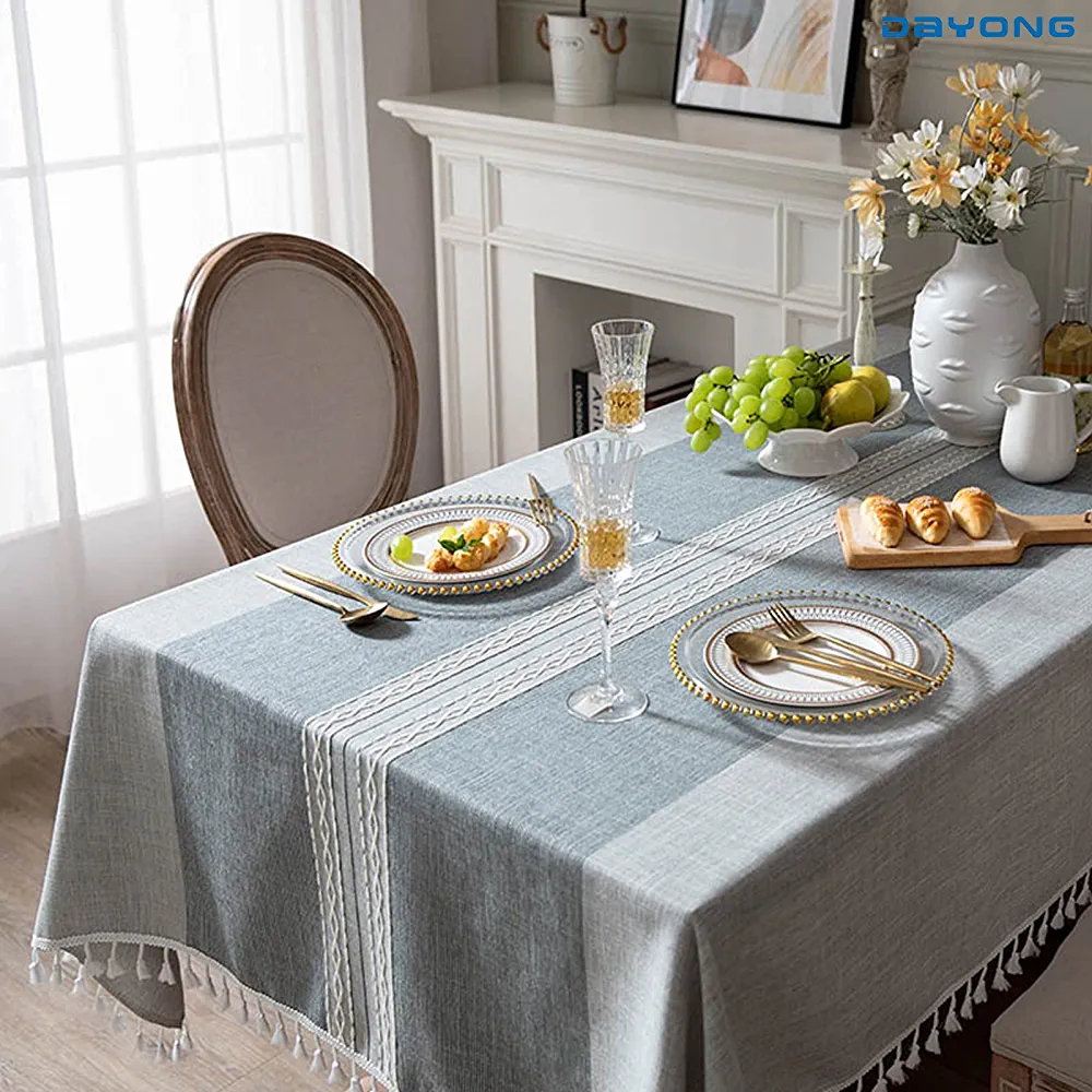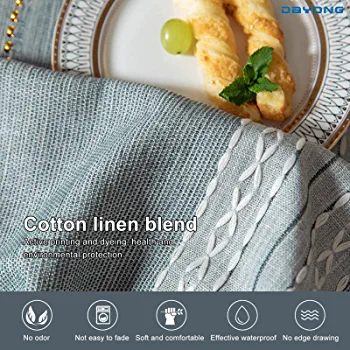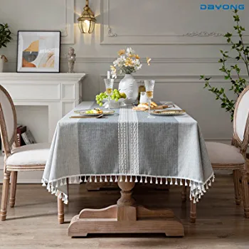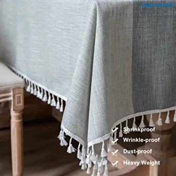 Our tablecloth features a super soft touch, rustic tassel, and 3D embroidery design, adding a touch of elegance to your table setting. To keep it looking its best, we recommend using a steam iron to remove any wrinkles and hand washing or gently machine washing with mild fabric detergent. Avoid bleach, twisting, stretching, or wringing, and hang dry to maintain its quality.