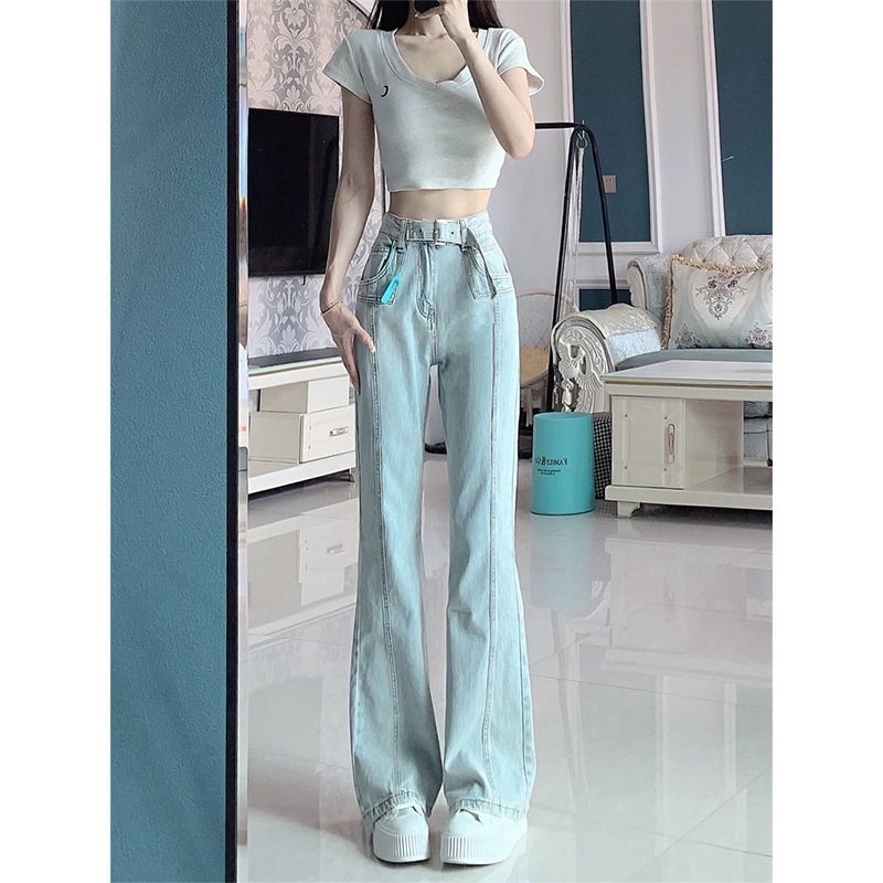 | nameOriginal | 145 Small American Style Hot Girl Light Color Micro-Raise Jeans Women's Summer High Waist Hot Girl Flared Pants Slim Look Trousers |