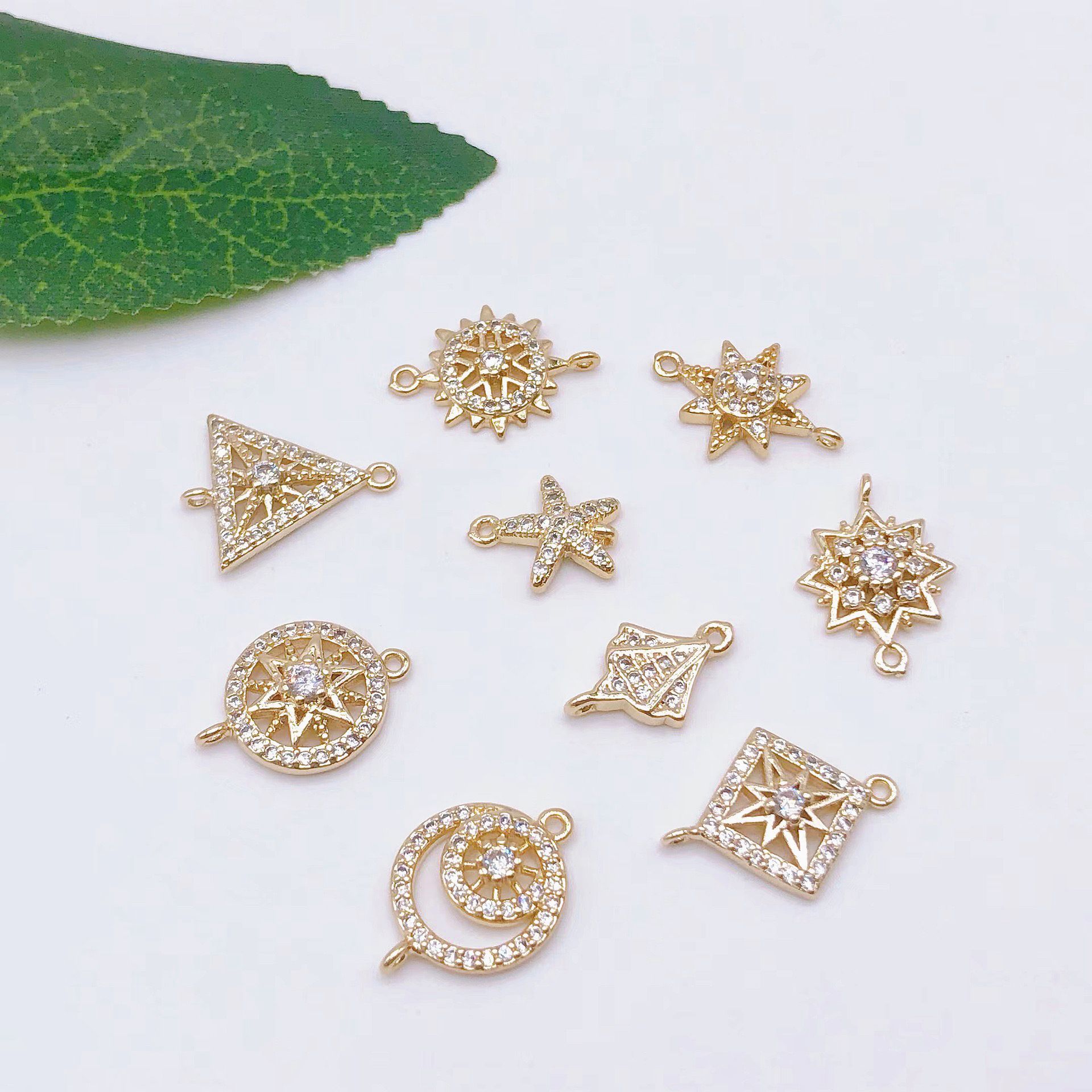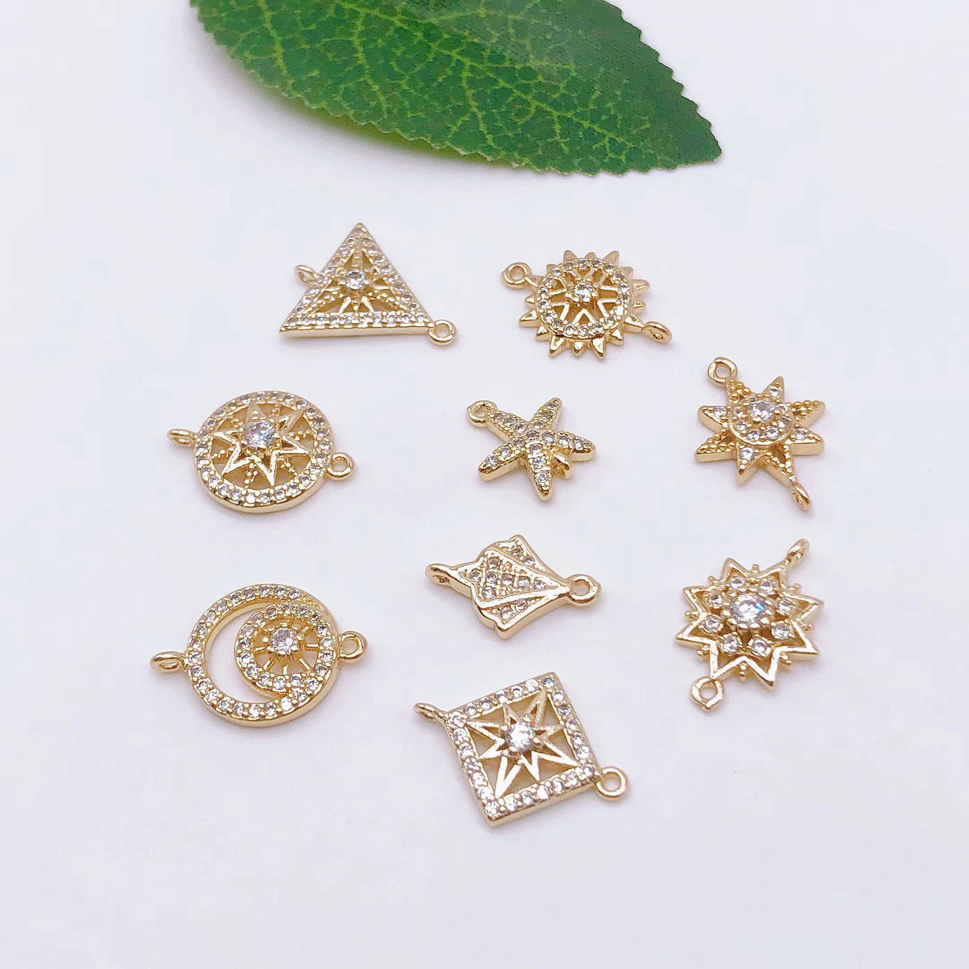 | nameOriginal | 14K bag real gold color retention trend jewelry micro inlaid zircon double hanging Star Moon snowflake diy jewelry accessories material |