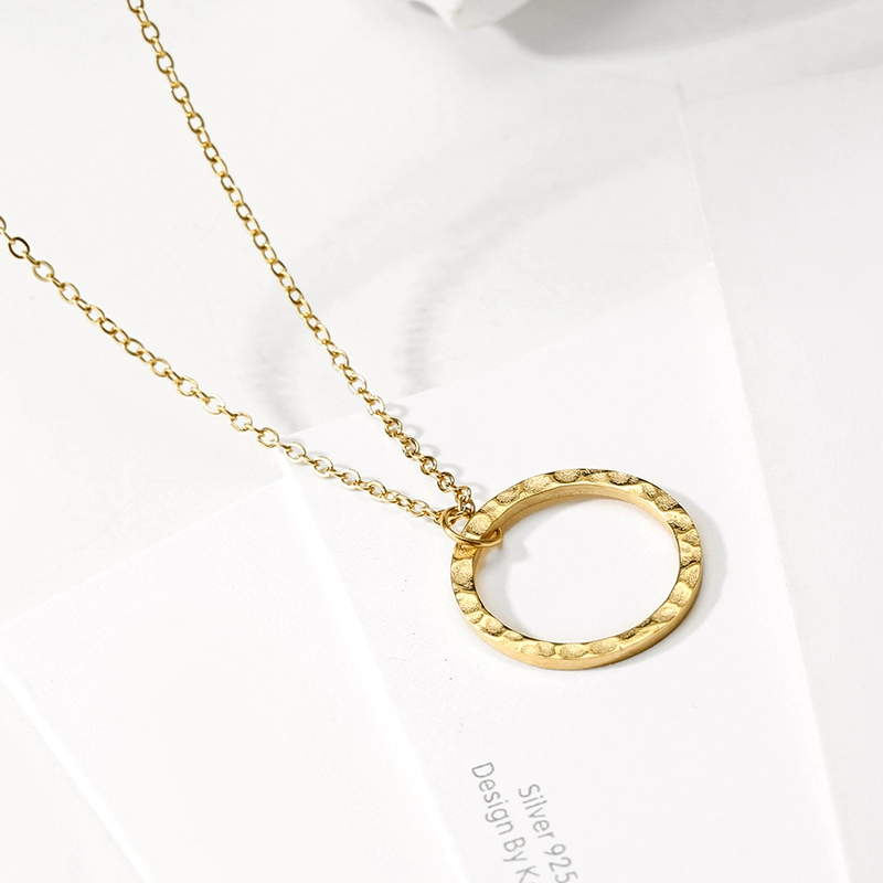 | nameOriginal | 14k gold plated hammer pattern single circle necklace titanium steel cast ins internet celebrity same style minimalist cold style fashion pendant jewelry |