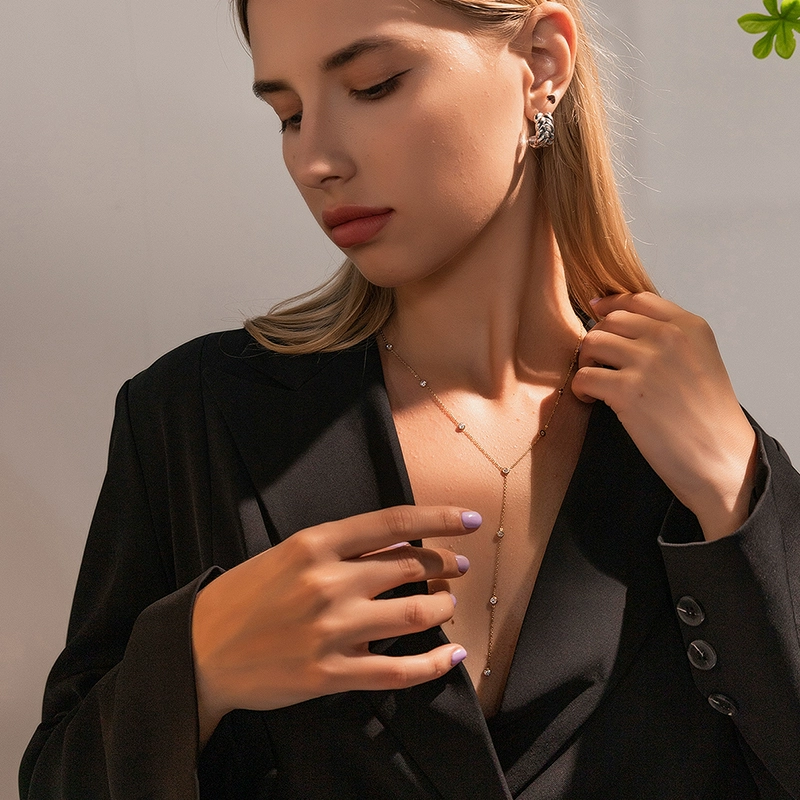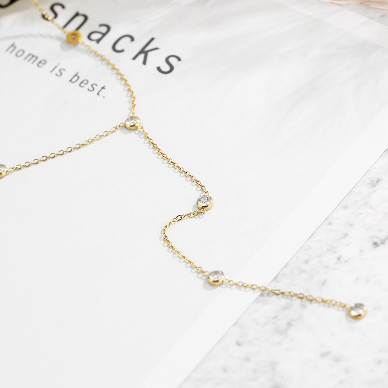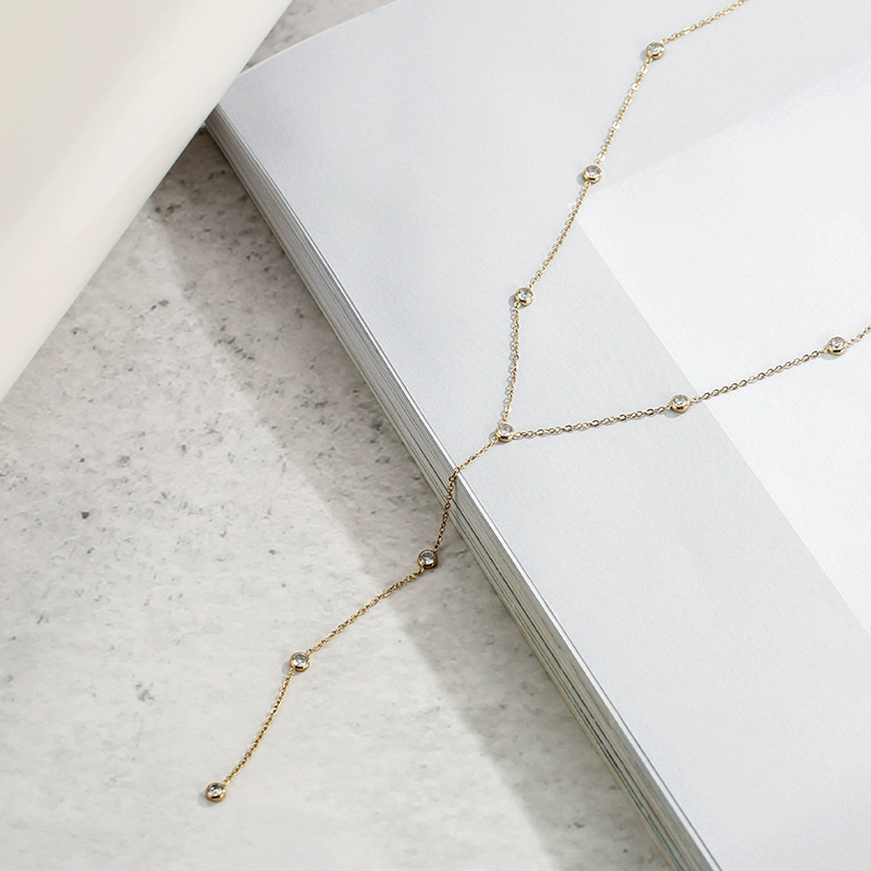 | nameOriginal | 14K gold-plated multi-zirconia inlaid tassel long Y-chain necklace European and American style fashion minimalist Korean simple long chain |