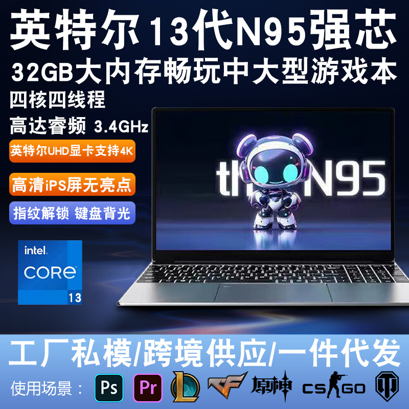 | nameOriginal | 15.6-inch Intel Core i7 laptop N95 business office design game book portable laptop |