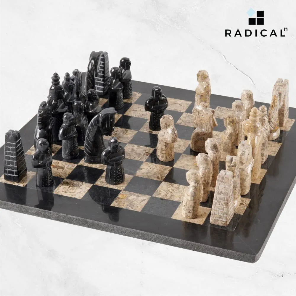 RADICALn 15 Inches Large Handmade Original Marble Black and Coral Full Chess Game Set – Tournament Chess Sets – Two Players Staunton Table Chess Board Game Set for Adults