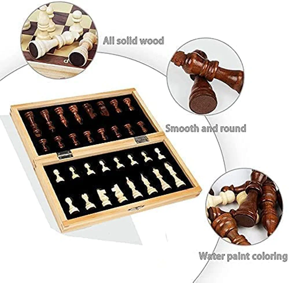 The chess pieces are handmade and come with a soft felt bottom that allows them to slide effortlessly without causing any damage to the board. The chess board is foldable, and the chess pieces can be stored inside, securely held in place with form-fitting foam.