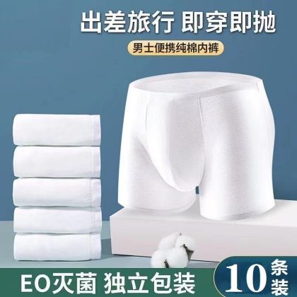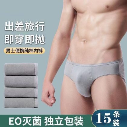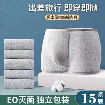 15 Pack Disposable Boxer Cotton Underwear Men’s Travel Separately Packed Cotton Triangle Sterile Wash-Free Shorts