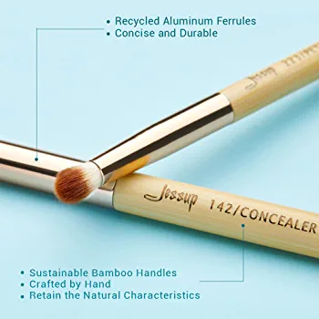 | descriptionOriginal | Jessup 15 Piece Bamboo Eye Makeup Brush Set – T137 Bristle material: pure synthetic hair Handle material: bamboo 142 Concealer Buffer: Apply and blend the concealer Soft synthetic hair Jessup makeup brush set uses excellent hair materials, synthetic hair is softer than animal hair. The hair is smoother and silkier. Natural make-up and suitable for the most sensitive skin types, which will give you a fantastic beauty look. Bamboo handle and alloy Ferrule This brush set contains the most eye-friendly brush types, which can be used as eyeshadow, eyeliner, concealer, defined, detail liners, perfect for cream, powders, and liquids. Easy to carry and clean Professional makeup needs special treatment, use baby shampoo to wash them, keep them dry after cleaning. it is lightweight and easy to carry as a travel tool. Description Materials: soft synthetic bristles + bamboo handle T271 T181 T157 T400 SP001 A005 |
