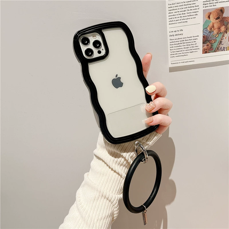 | nameOriginal | 15 Simple solid color wavy border 13 Bracelet 12 Suitable for iphone16 mobile phone case 7 Apple 14plus transparent 11pro Max hanging ring Xs Max silicone ring XR anti-fall soft SE2 female 8 |