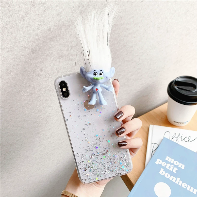 15 Xiaohongshu same style 13 suitable for iphone6s mobile phone case 7 apple 14plus cartoon 8X hair tied doll 12mini braid 11pro Max glitter Xs Max transparent XR soft 3SE2
